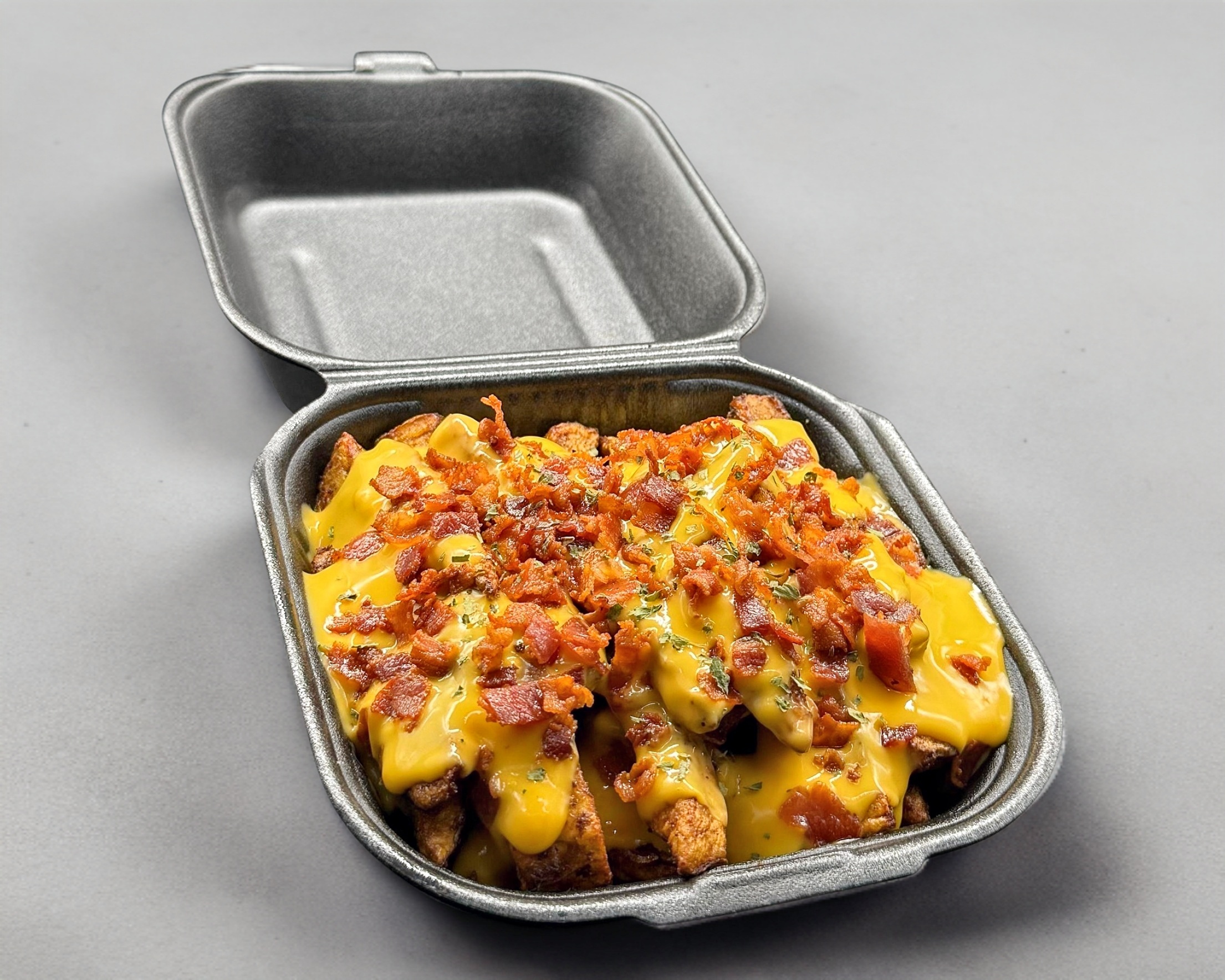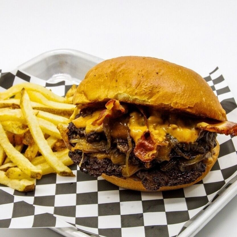 Doble carne smash bien jugosa, queso americano, tocino crujiente, cebolla caramelizada y todo el sabor de la casa. Incluye 250 g de papas doradas. más carne, más sabor, la favorita.