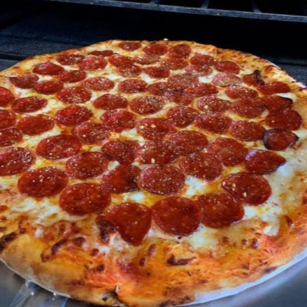Pizza clásica familiar de pepperoni con opción de orillas de queso.