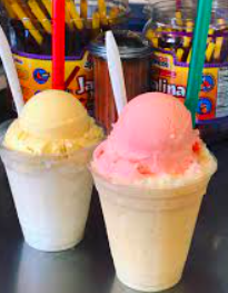 3 Bolas de Nieve a elegir con jarabe de chocolate, oreo, cacahuate, wafer y crema batida .