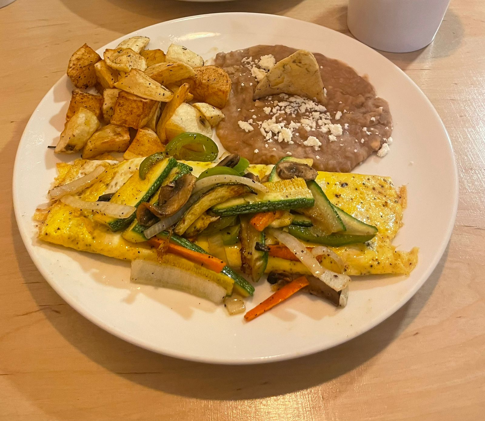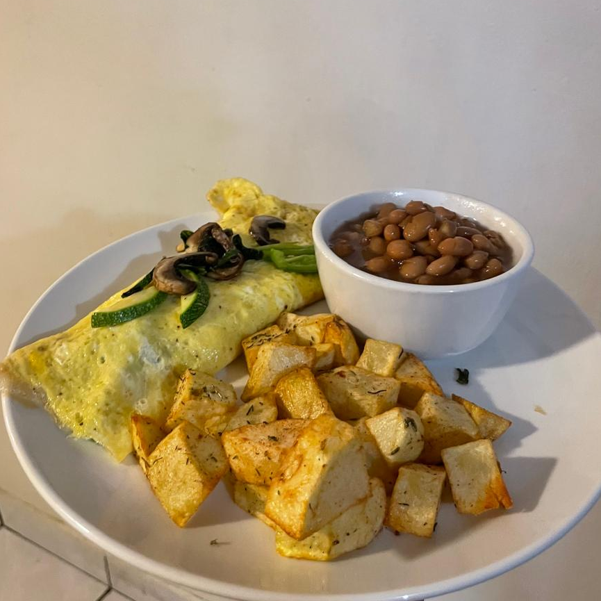 Omelette saludable relleno con una mezcla de verduras frescas.