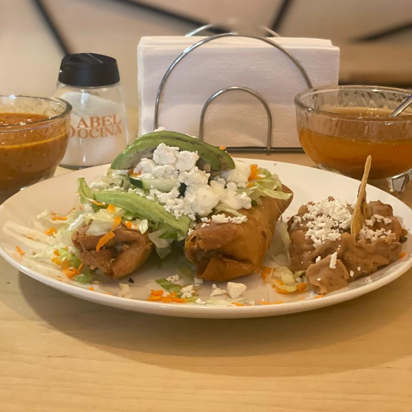Orden de 2 piezas, acompañados de frijoles refritos.