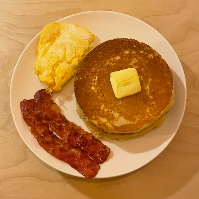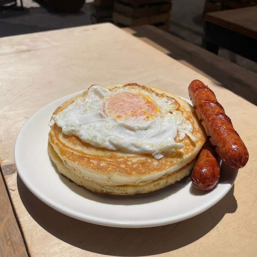 Hot cakes acompañados de huevo al gusto, una combinación perfecta.