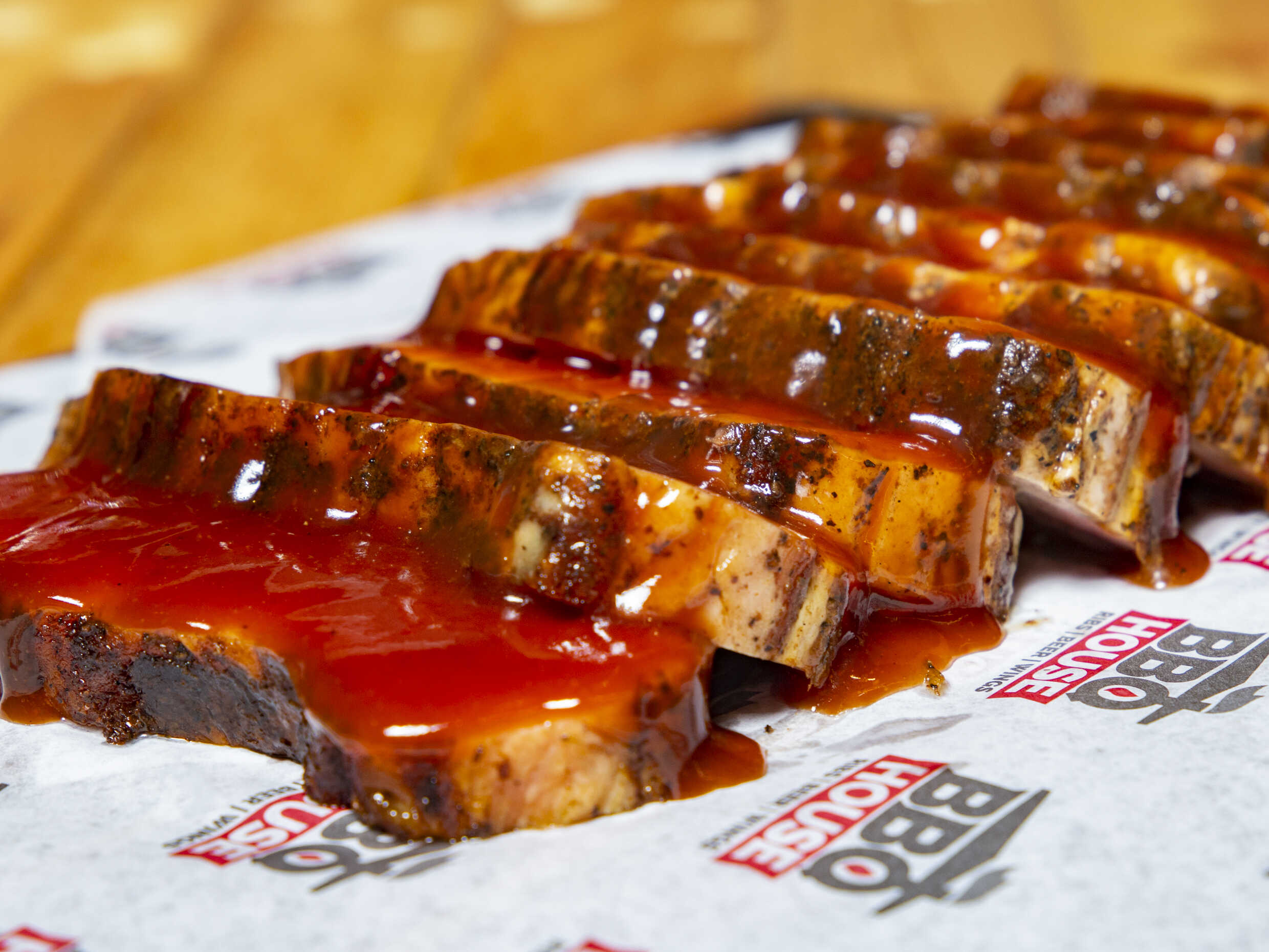 1/2 kilo De nuestras costillas de puerco, ahumadas por 6 a 8 horas, incluye 1 Complementos a elegir