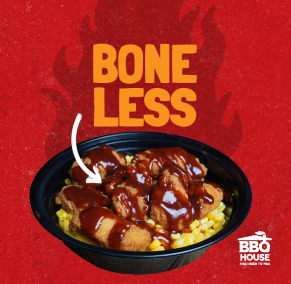 1/2 de kg de crujiente pechuga de pollo , bañados en salsa de tu elección acompañados de papas fritas.