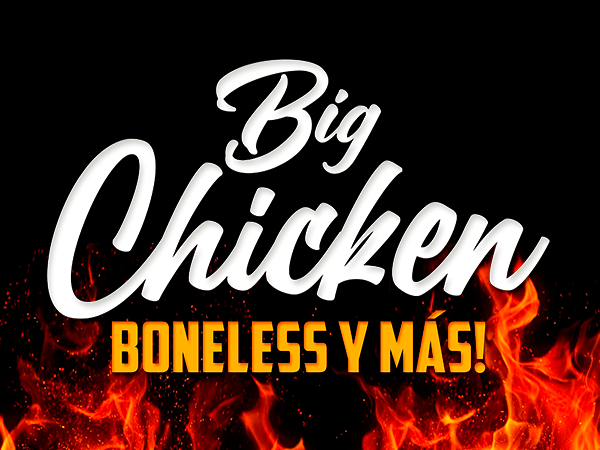 15 A 17 PZ DE BONELESS BAÑADOS EN TU SALSA FAVORITA, GRATINADOS, ACOMPAÑADOS DE PAPAS FRITAS, RANCH Y APIO