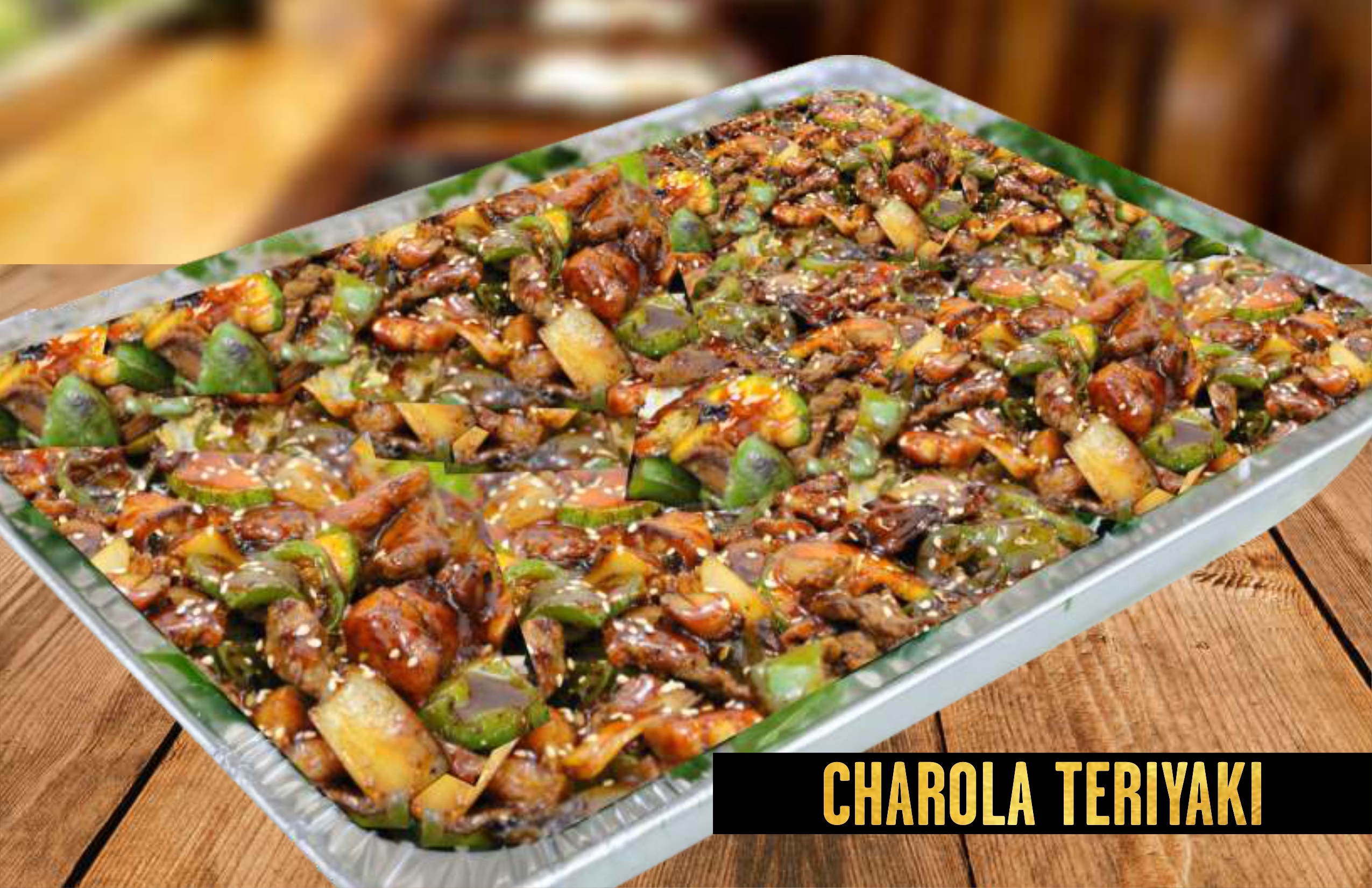 Charola de teriyaki de pollo chica para 3-4 personas.