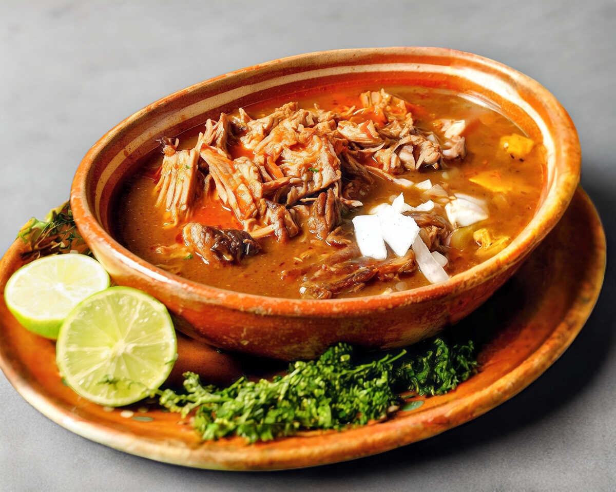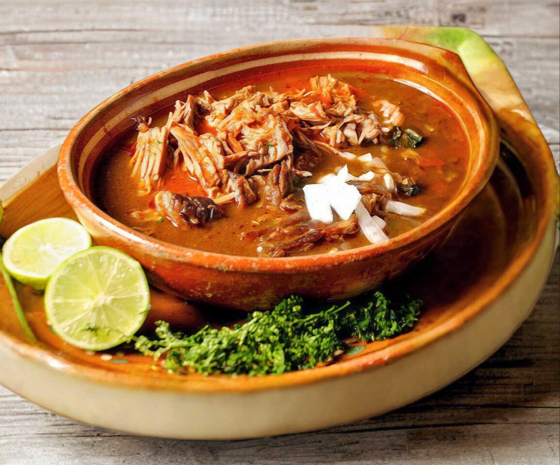 220 gr Birriamen con chicharron. Incluye salsas y verduras aparte