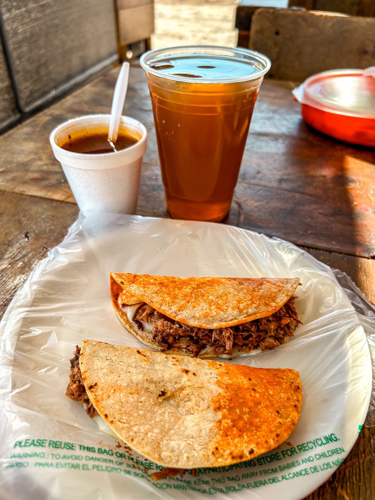 Taco de Birria (50gr)*3 + Consomé Sin Carne*1 + Té Helado (20 Oz)*1