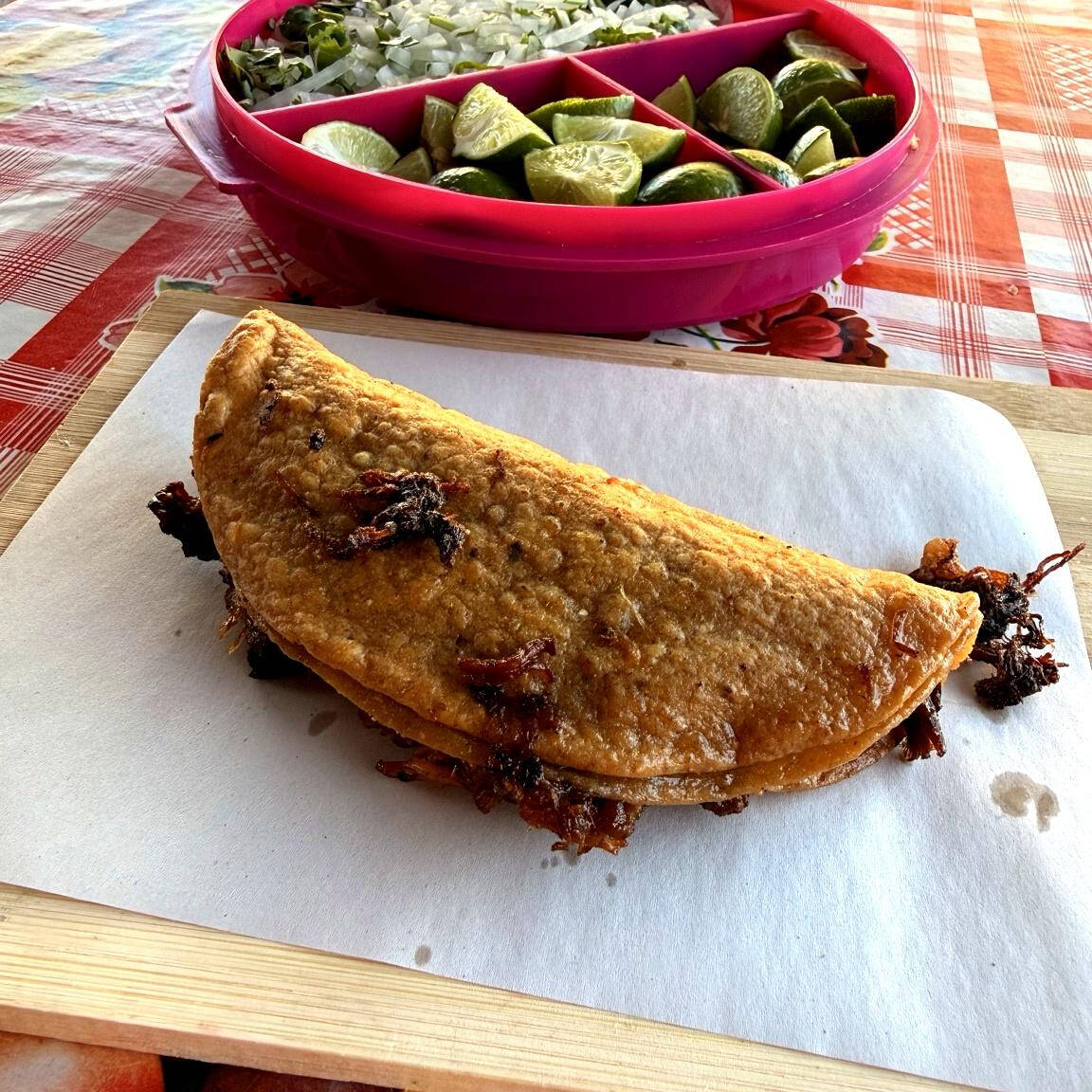 50gr de carne de birria en tortilla para taco