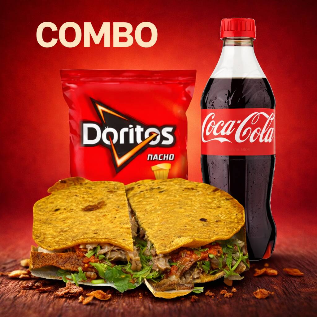 1 Mulita (bien reportada), papitas y bebida de tu elección