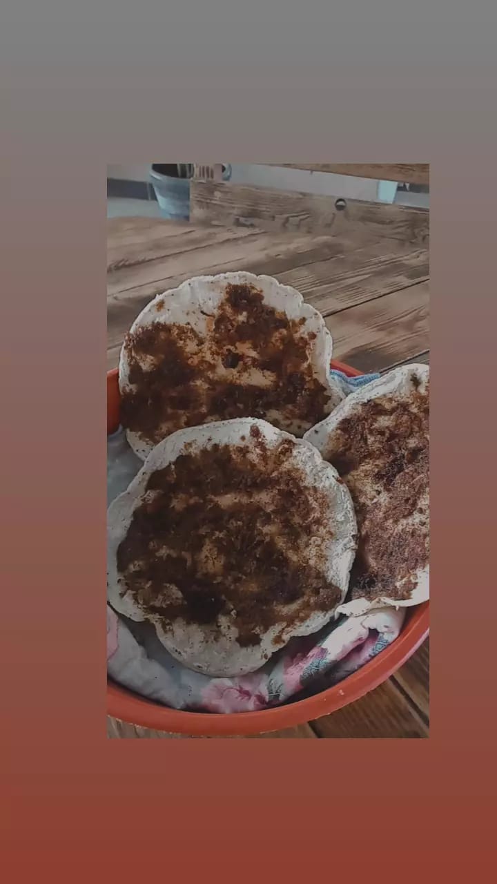 Toritlla de maíz con carne de chivo.