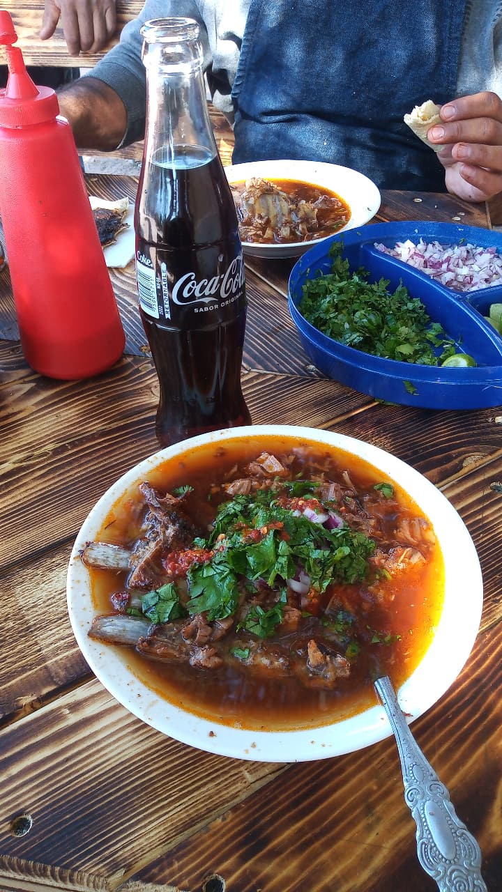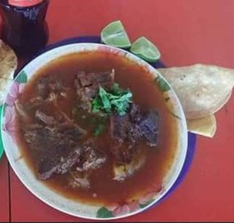 Carne de chivo con 1 l de caldo. Incluye 5 tortillas
