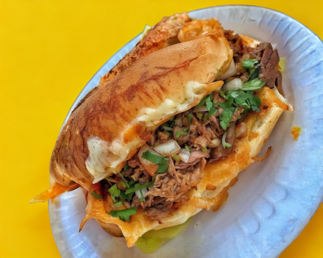 Torta personal, la cual incluye: pan con carne de res o borrego incluye verdura ( cebolla blanca, cilantro, repollo) (Telera 13cm) salsa de la casa incluye 90g de carne de su preferencia