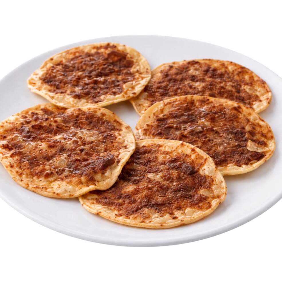 Sabrosa tortilla de maiz semi-dorada con una capa de asientos