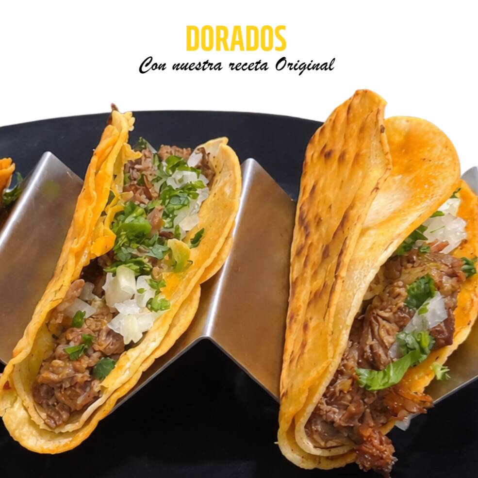Tortilla de maiz doradita rellena de birria de res con nuestra receta original