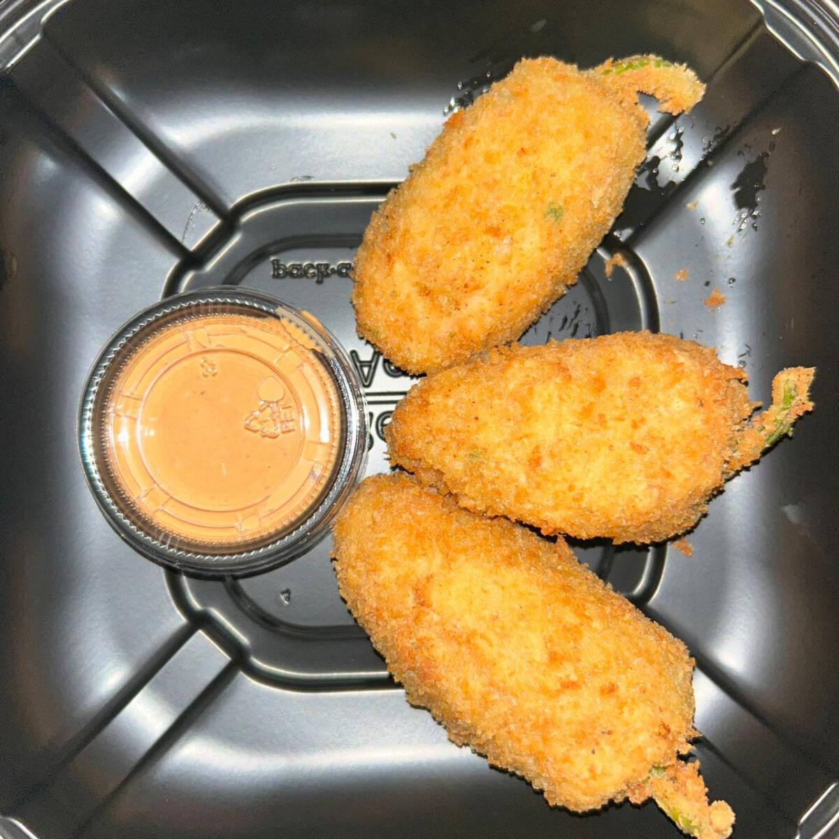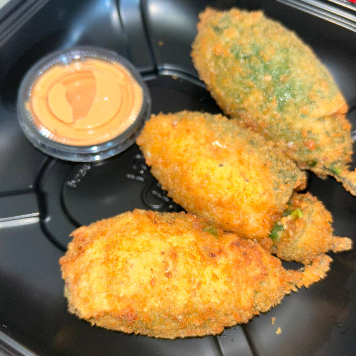 3 Piezas de jalapeños rellenos de queso crema, queso monterrey, tocino y camaron y empanizados