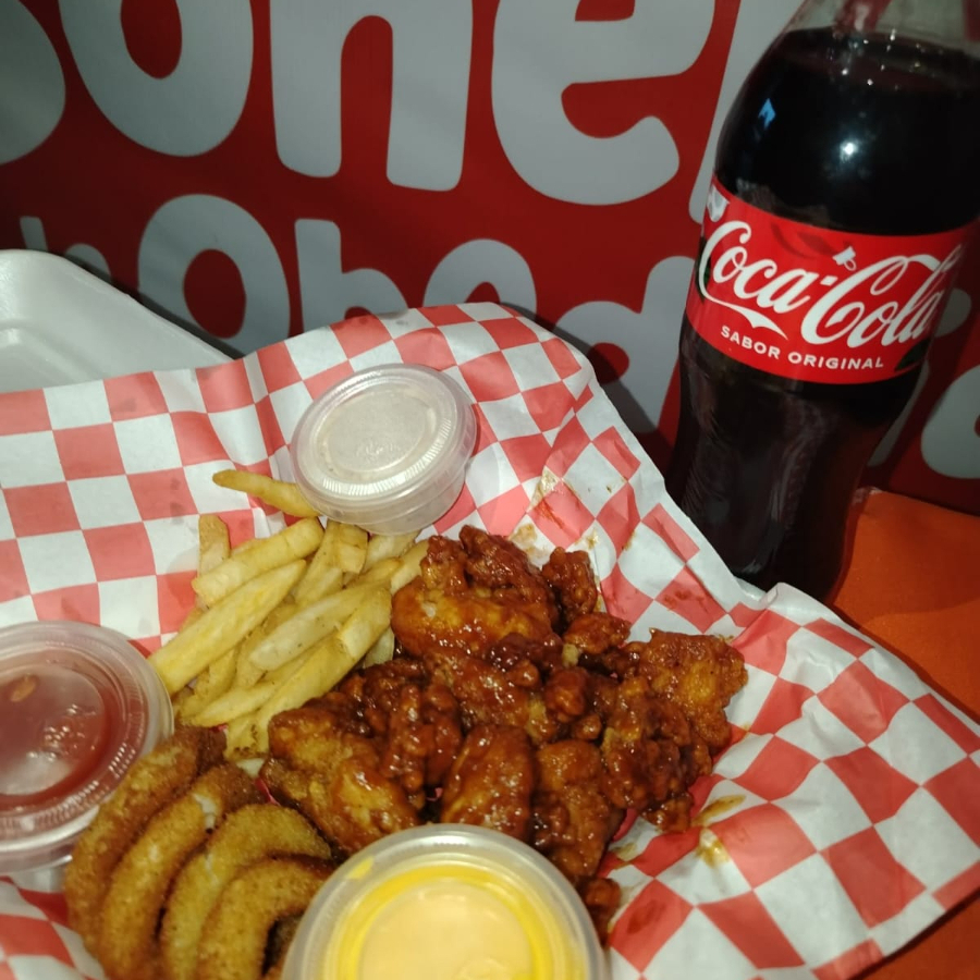 20 PZ + 10 AROS + PAPAS + SODA 1 1/2