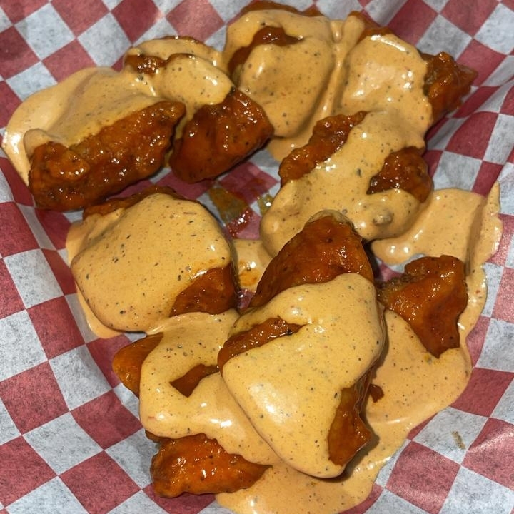 Jugosos trozos de pechuga de pollo perfectamente sazonados y fritos hasta quedar dorados.