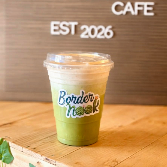 Matcha latte con cold foam de vainilla y endulzado con vainilla