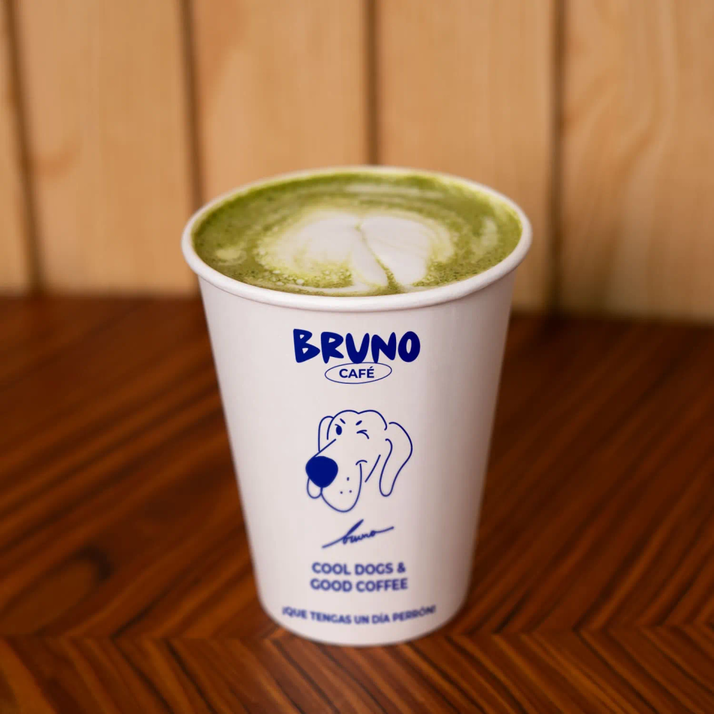 Cremoso matcha con esencia de vainilla y leche de elección en vaso de 12oz.
