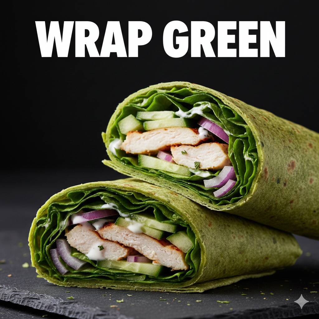 Tortilla de Espinaca con Pechuga, Lechuga, Pepino, Cebolla Morada, Aguacate, Tocino y Aderezo Ranch