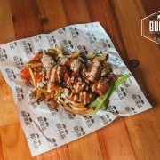 Cama de papas fritas estelarizadas por 250 g de boneless en la salsa de tu preferencia bañados en nuestro nada diluido aderezo chipotle de la casa.