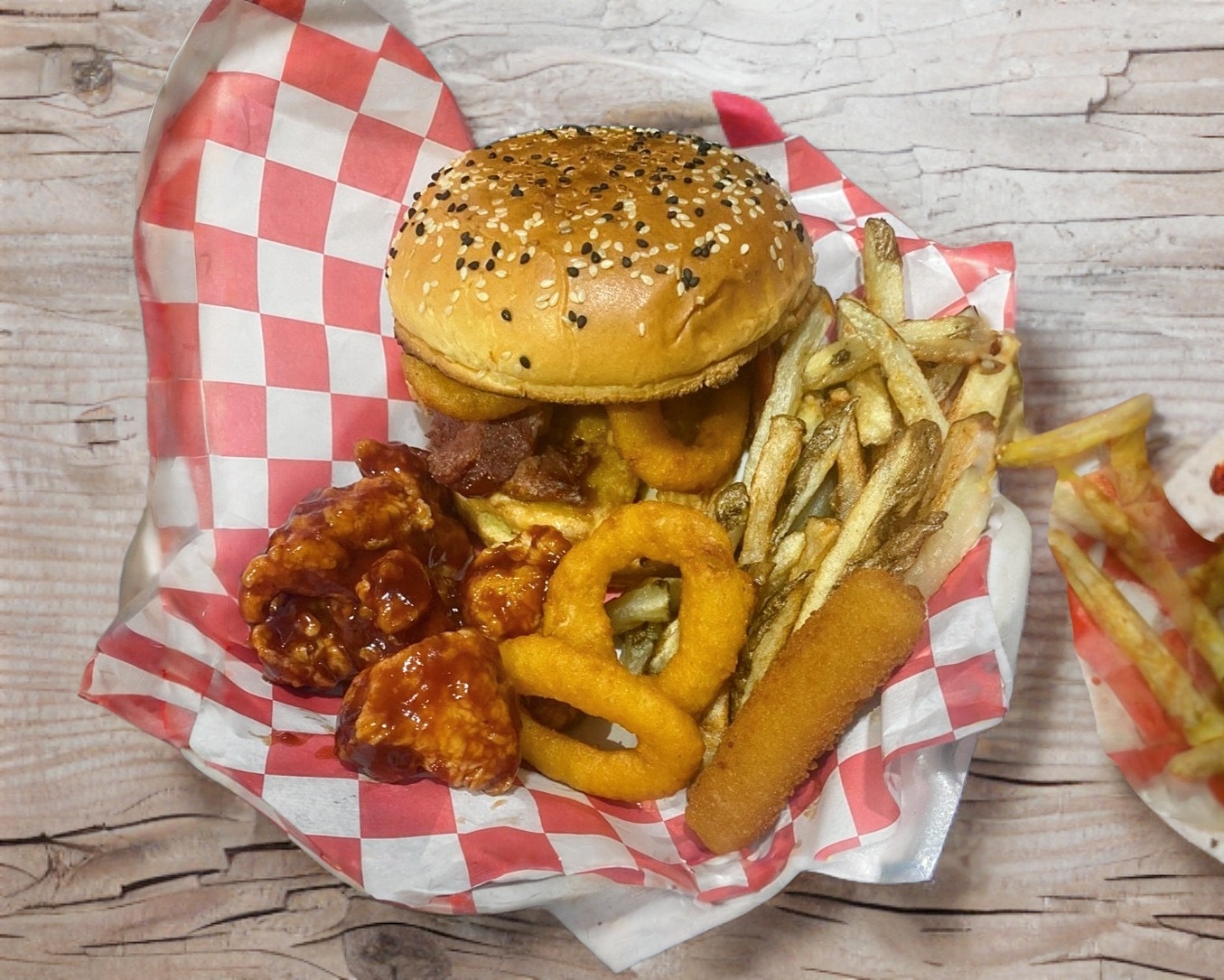 Hamburguesa Mix con Boneless Aros de Cebollla