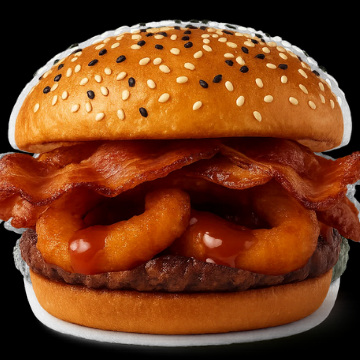 Hamburguesa Tocino con Carne y Aros de Cebolla