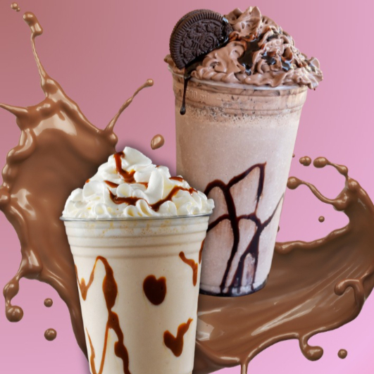 Frappe de Oreo, con leche regular, crema batida, chocolate liquido y galletas