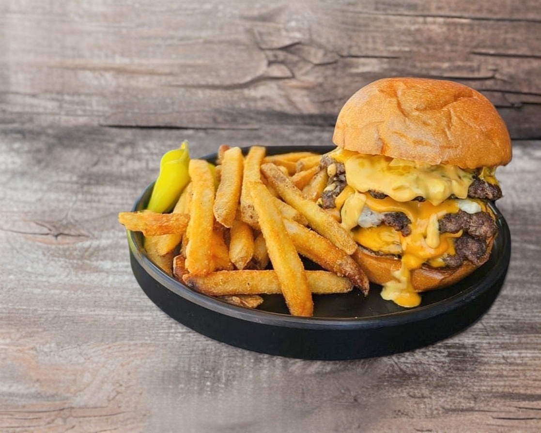 Doble carne, doble golpe de sabor. Inspirada en los míticos hermanos del arcade, esta burger lleva 300g de carne de res, cebolla caramelizada, quesos americano y suizo, con aderezo pixelado. Un dúo letal para el hambre feroz. Acompañada de papas fritas.