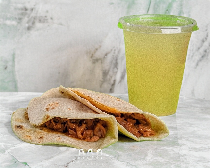 Taco 170Gr Aprox ( 3 piezas) + Agua Natural de Sabor en vaso de 16 Onzas Ch