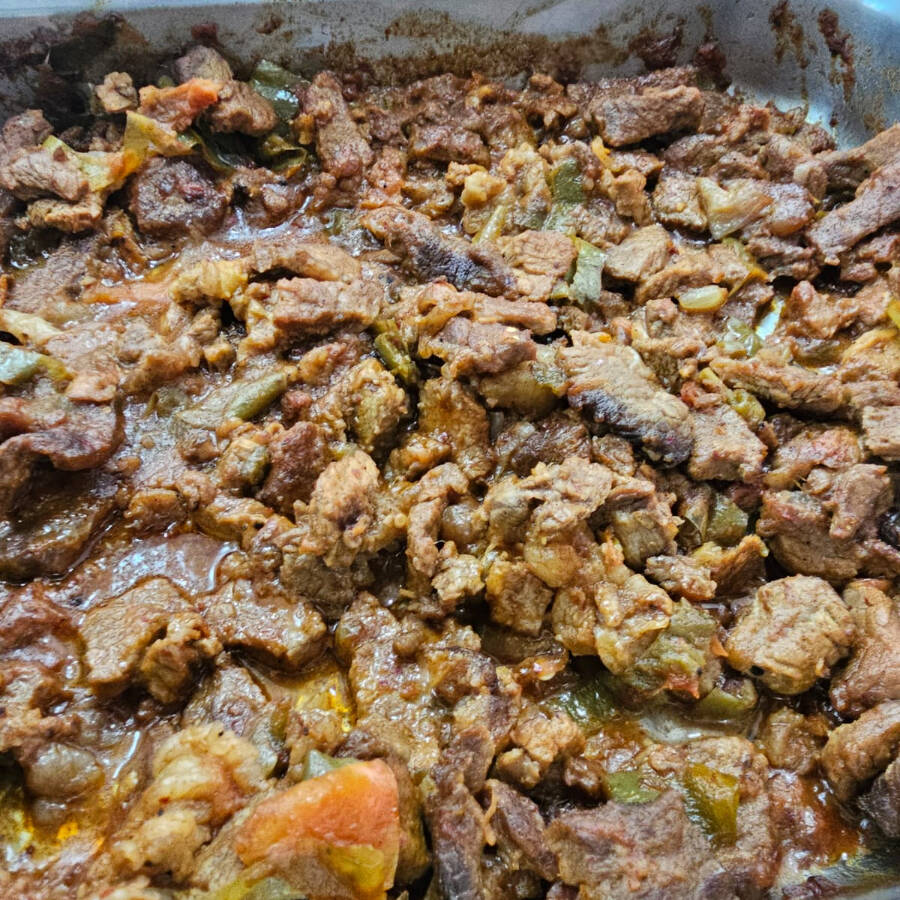 Mega burro de Bistec ranchero servido con arroz y frijol