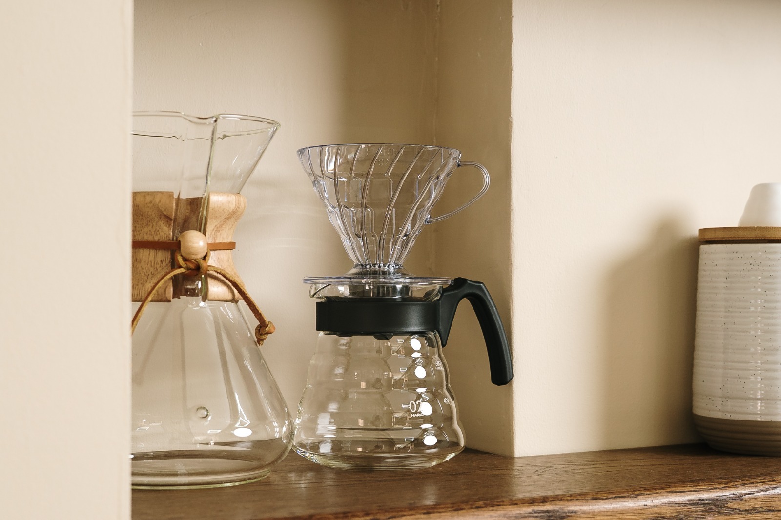 Café de sabor suave y claro, extraído con Chemex, servido en una porción de 12 oz.