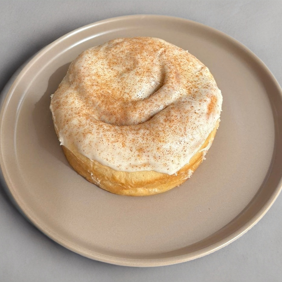 Clásico rollo de canela, suave y dulce.
