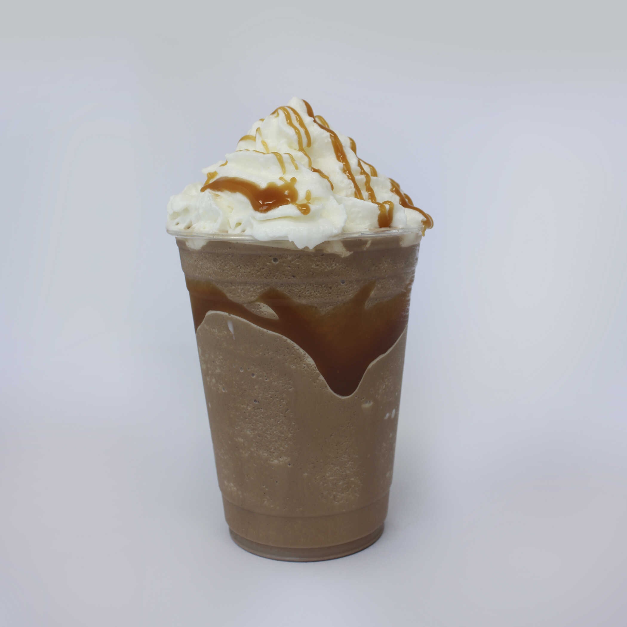 Refrescante Frappé con sabor a caramelo y con una cobertura de salsa de caramelo.