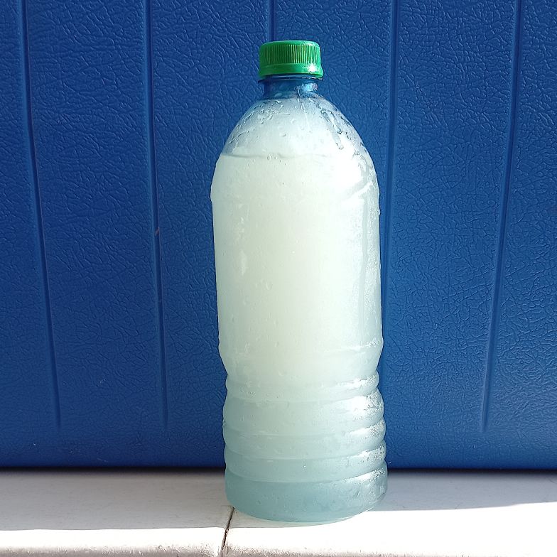 jugo vivhi de cahuamanta acompanado de salsa y limon.