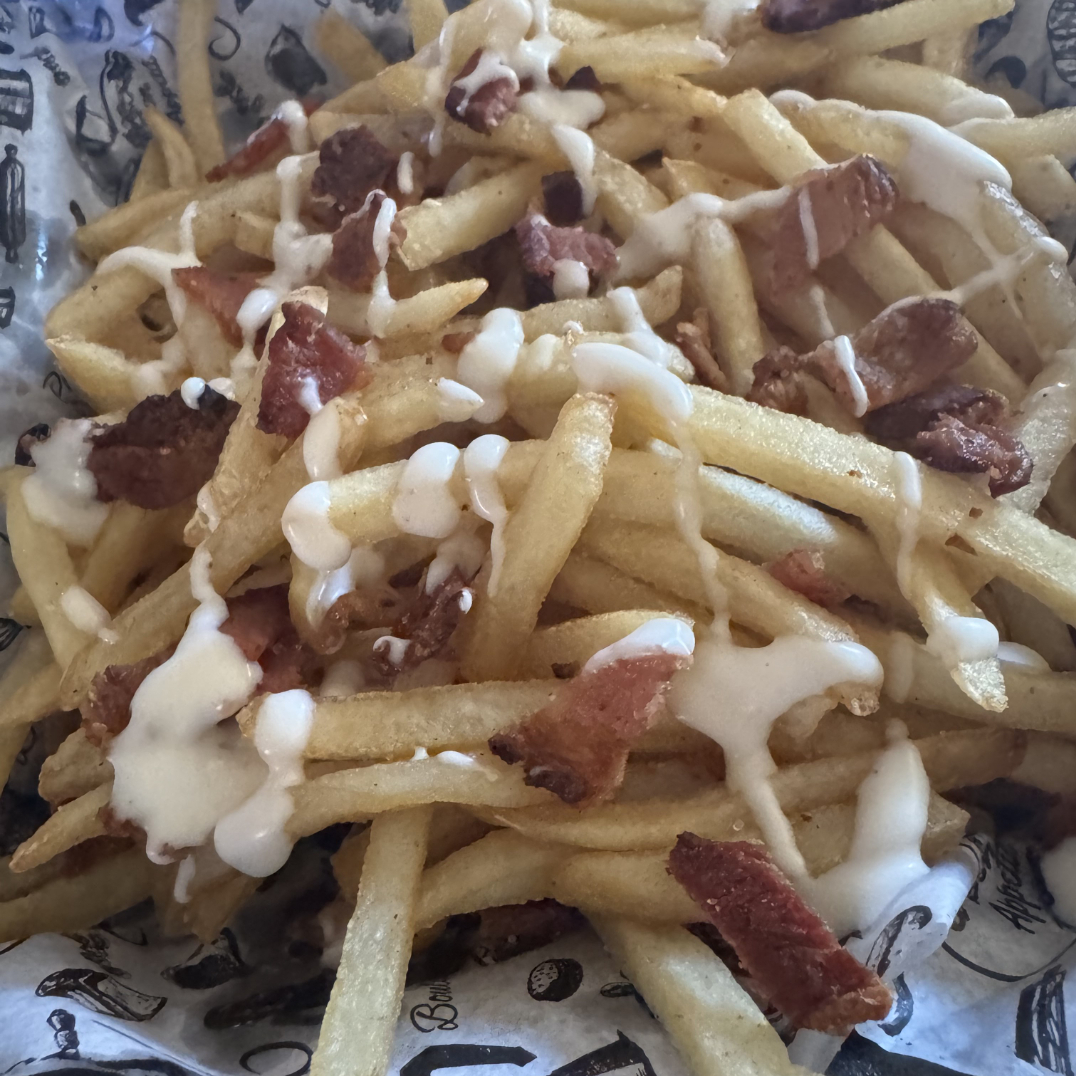 papas fritas con tocino con aderezo Ranch y sazonador de la casa