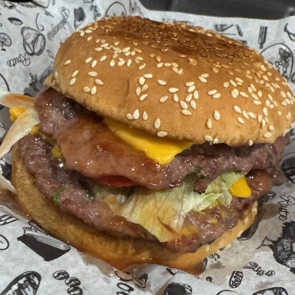 DOBLE CARNE DE RES, DOBLE QUESO, LECHUGA, TOMATE Y TOCINO
