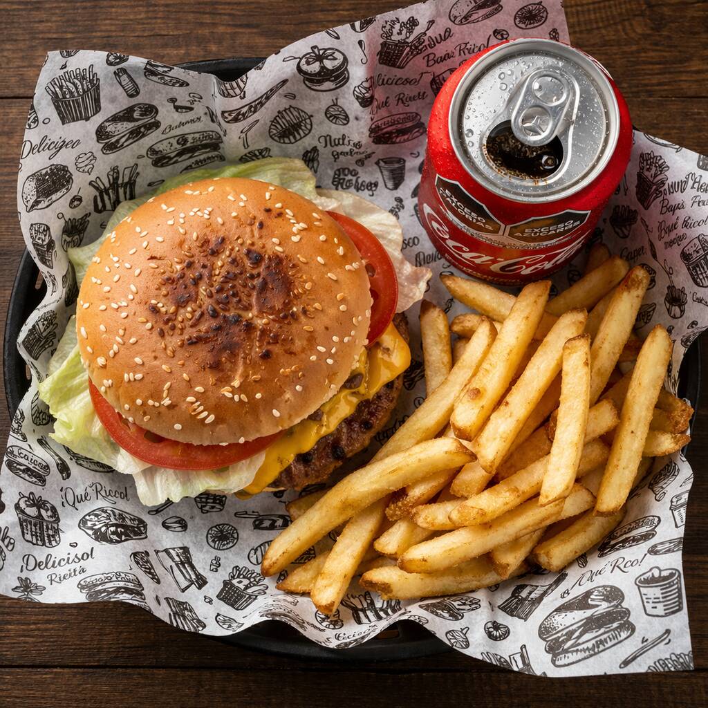 HAMBURGUESA SENCILLA + PAPAS FRITAS*1 + Coca Cola 355 Ml*1