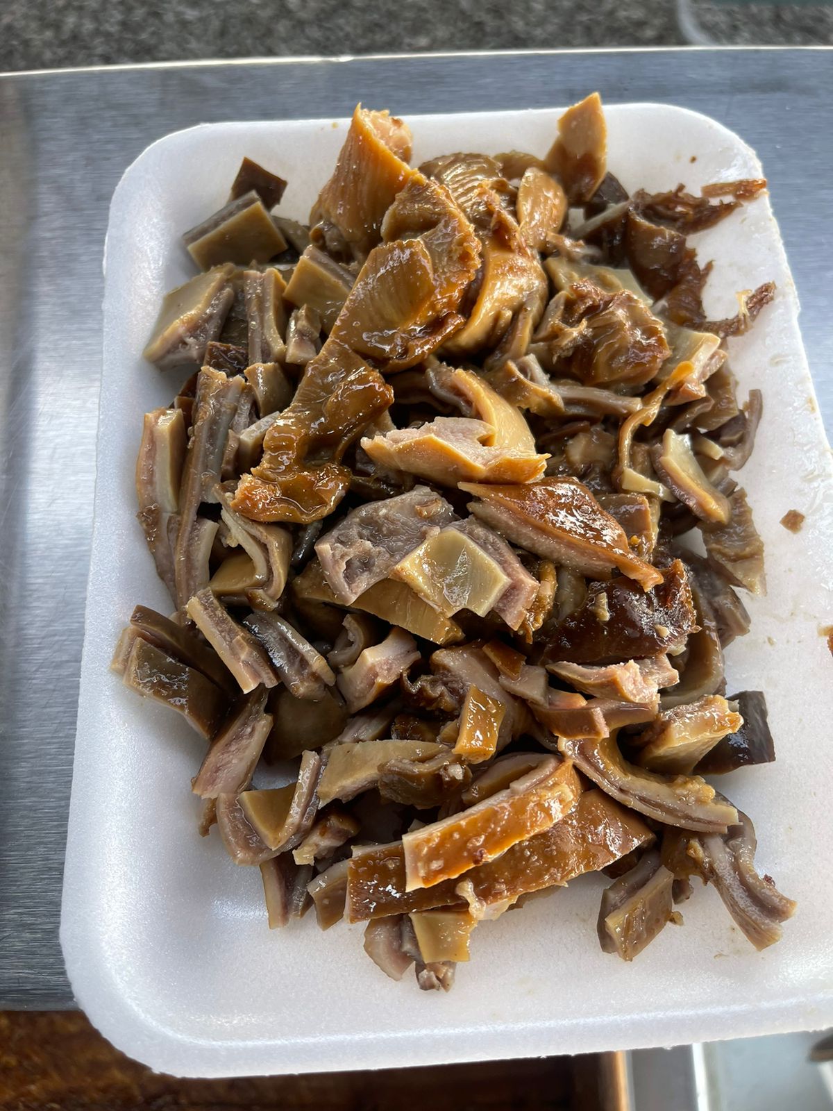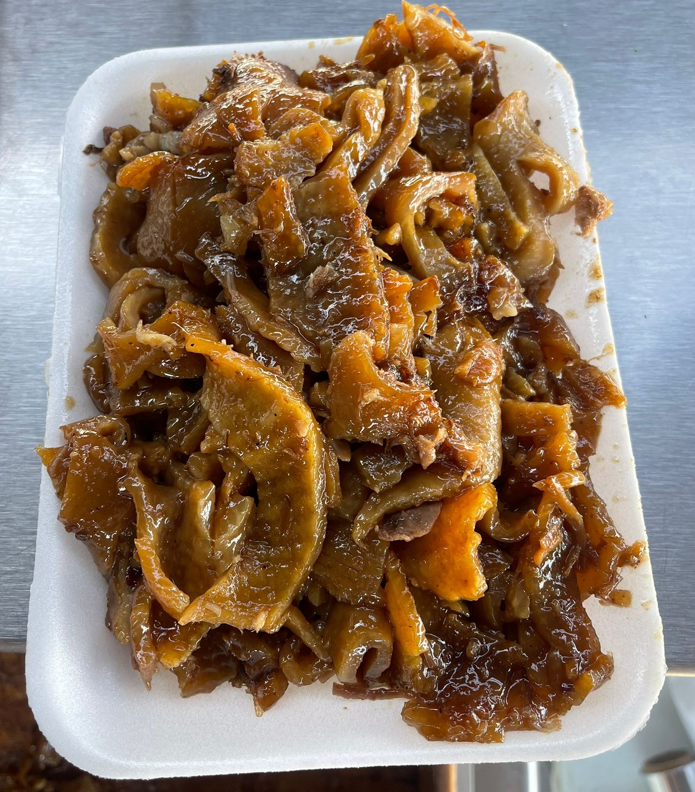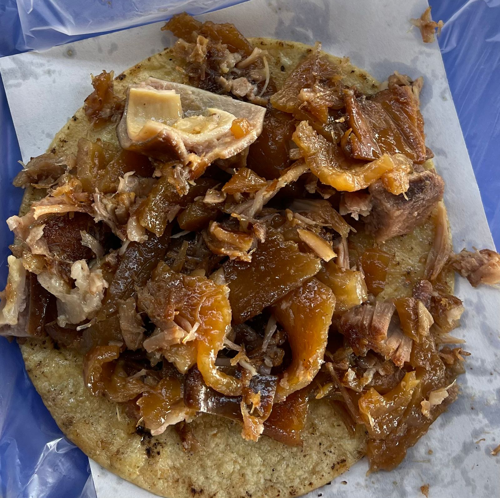Medio kilo de buche de cerdo, tierno y bien sazonado, acompañado de repollo, cebolla, salsas y 10 tortillas de maíz.