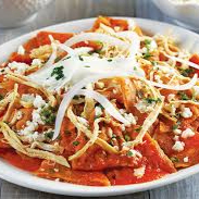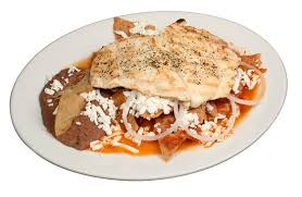 Clasicos chilaquiles en salsa roja o verde con queso cotija y crema, cebolla, cilantro, acompañados de frijoles