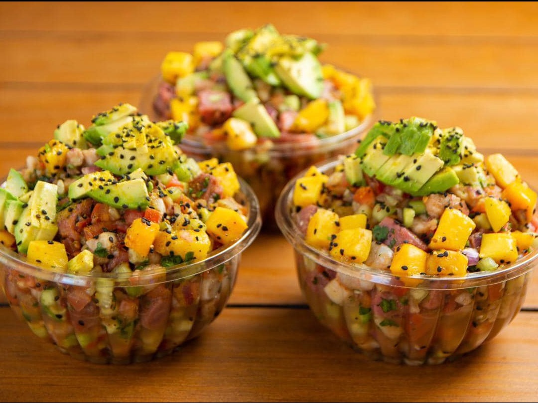 Cubito de atún, pescado, camarón curtido, tomate, cebolla morada, cilantro, pepino. aguacate, ajonjolí tostado, cebolla crispy. bañado en salsa de la casa
