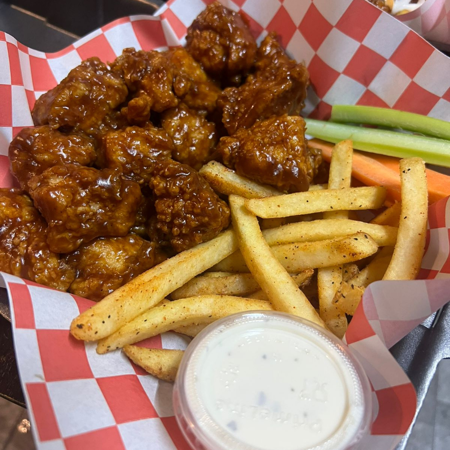 600 gramos de boneless acompañados con papas, zanahoria, apio y ranch