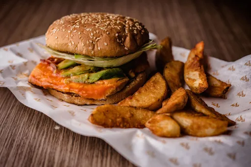 200 g De 100% carne de res con queso amarillo, guacamole, tomate y lechuga.