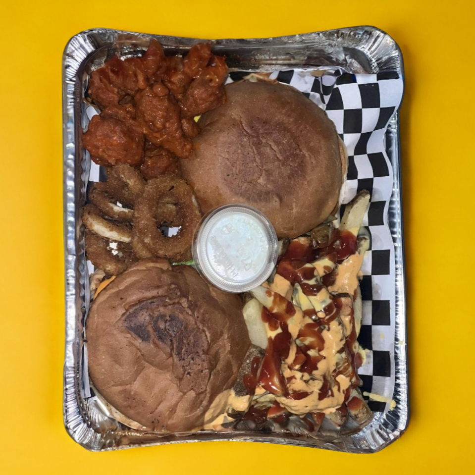2 HAMBURGUESAS+PAPAS+AROS DE CEBOLLA+250GRS ALITAS O BONELESS+ADEREZO RANCH
