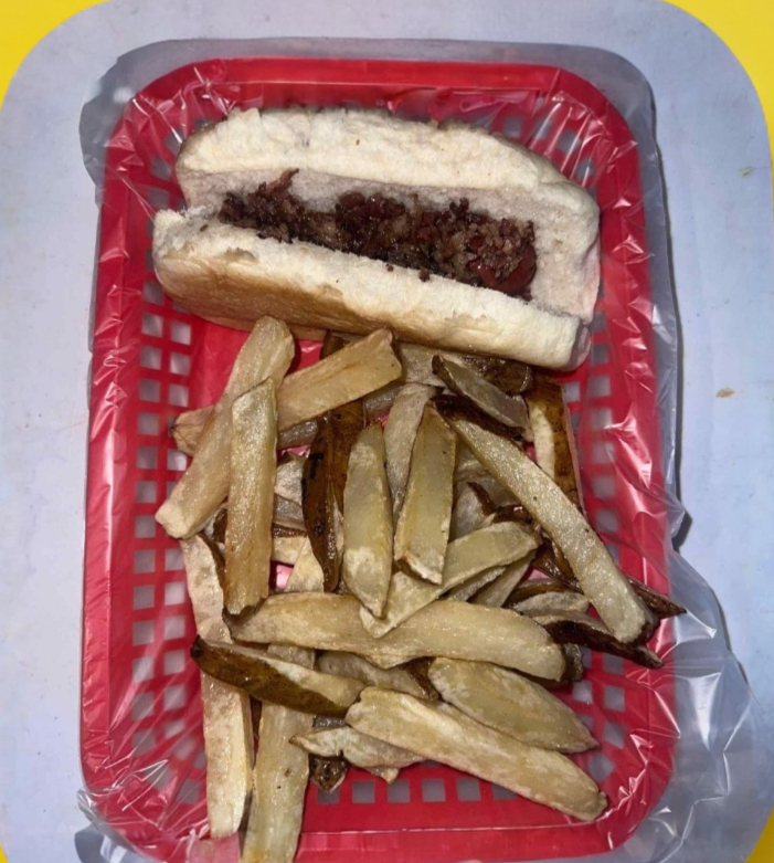 Papas francesas con trocitos de salchicha ingredientes a escojer