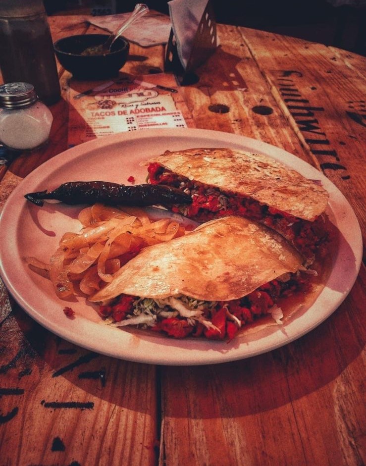 Quesadilla Harina y Carne, Taco Maíz y Agua Fresca
