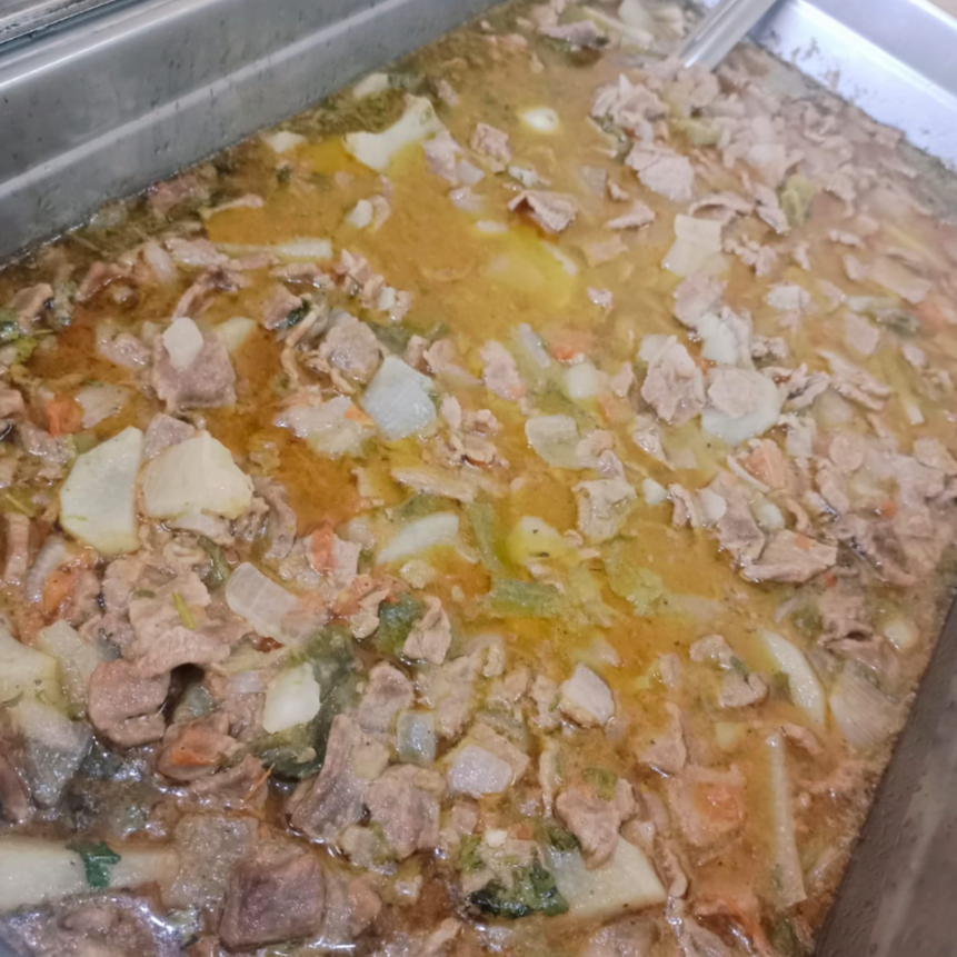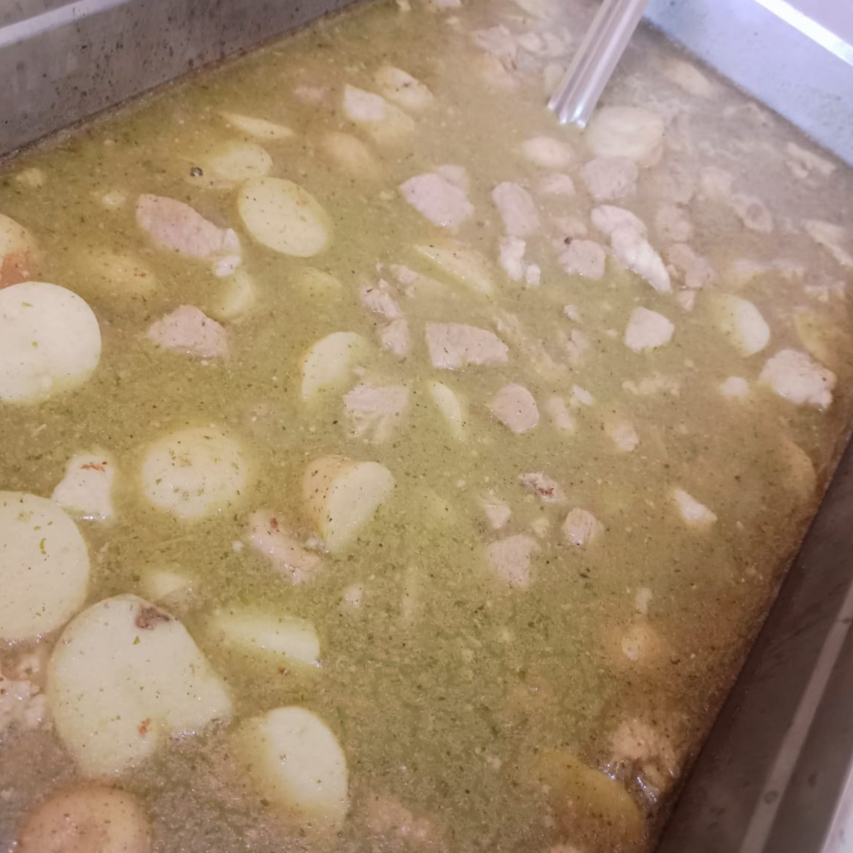 PUERCO EN SALSA VERDE CON PAPAS, ARROZ, FRIJOLES, SOPITA , TORTILLAS Y TE