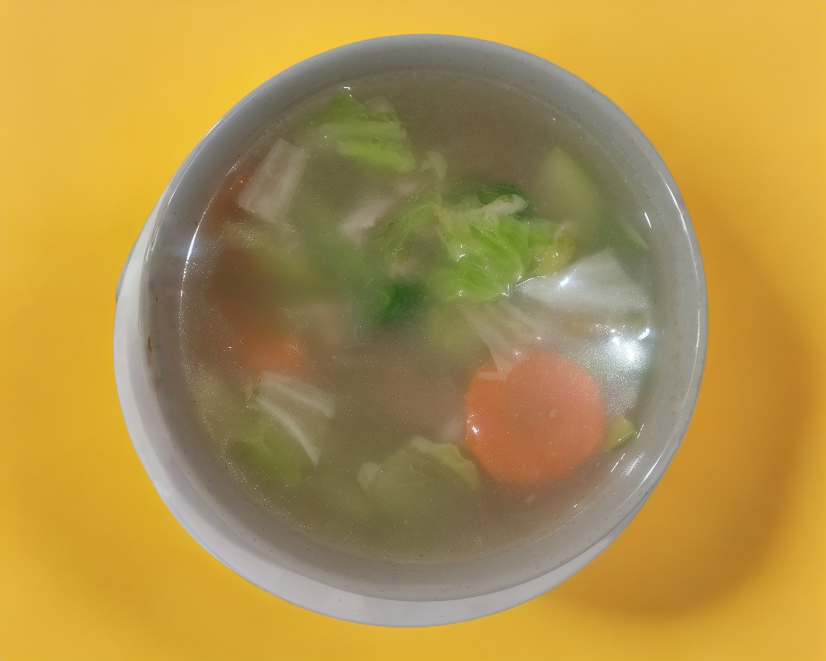 Sopa de verduras (quelite napa, brócoli, zanahoria, calabaza, etc.) con pollo.