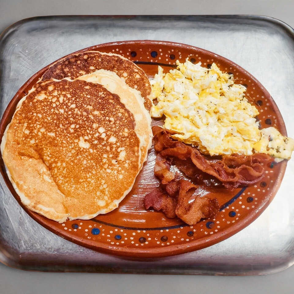 3 Hot cakes con tocino